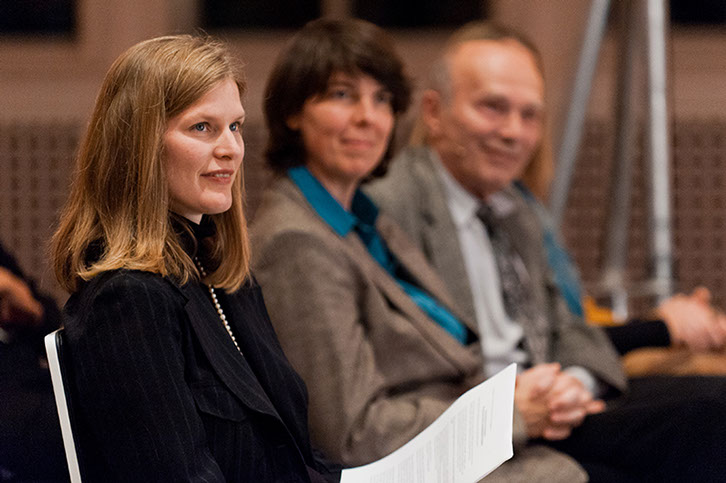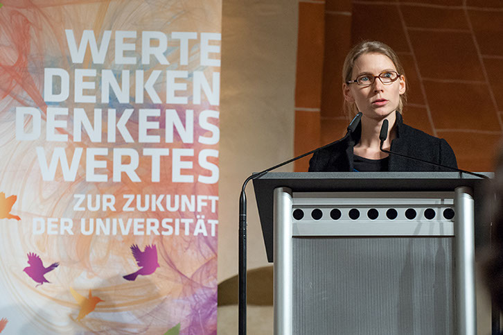 Prof. Dr. Gesine Schwan und Podium u.a.m. Dr. Birgit Barden,
